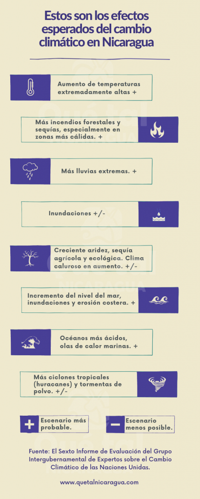 Estos son los efectos esperados del calentamiento global en Nicaragua, según el informe 2021 del Grupo Intergubernamental de Expertos sobre el Cambio Climático de las Naciones Unidas. Se trata de un resumen de las consecuencias regionales para Centroamérica y el Caribe.
