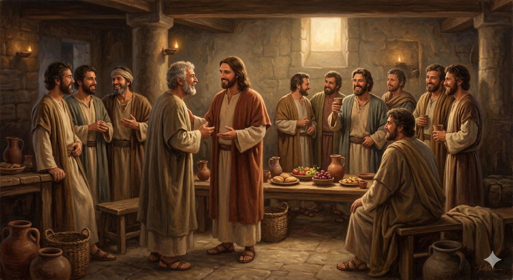 Pan, vino, buen ambiente, y posiblemente los sonidos de liras, arpas y címbalos, colándose por las ventanas, daban para una noche espléndida, pero entonces Jesús se puso serio.